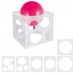 Cubul flexibil pentru măsurarea baloanelor este un instrument esențial pentru decoratorii profesioniști și pasionații de aranjamente cu baloane. Realizat din plastic semitransparent, subțire și flexibil, acest cub de 30 cm dispune de orificii de diferite dimensiuni pe toate cele șase laturi, permițând măsurarea precisă a diametrului baloanelor înainte de utilizare.