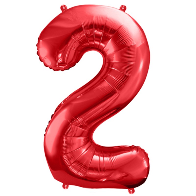 Balon din folie rosie sub forma de cifra 2 cu inaltimea de 100 cm .