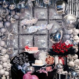 Dimensiune: 46 cm, imprimat pe ambele fețe cu design disco argintiu.