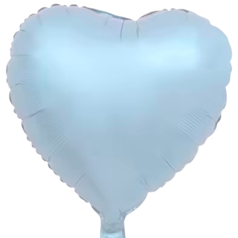 Balon din folie în formă de inimă, culoare soft blue mat, dimensiune 43 cm, ideal pentru decoruri elegante, evenimente romantice, botez sau petreceri speciale.