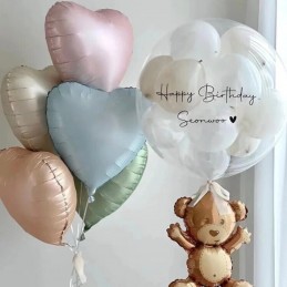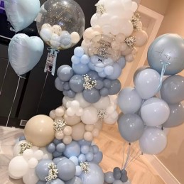 Cu o dimensiune de aproximativ 43 cm, balonul poate fi umflat cu aer sau heliu și integrat cu ușurință în aranjamente de baloane, arcade, buchete sau decoruri foto. Culoarea pastelată adaugă un plus de finețe și se combină armonios cu alte nuanțe neutre sau pastel, fiind ideal atât pentru decoruri minimaliste, cât și pentru cele sofisticate.