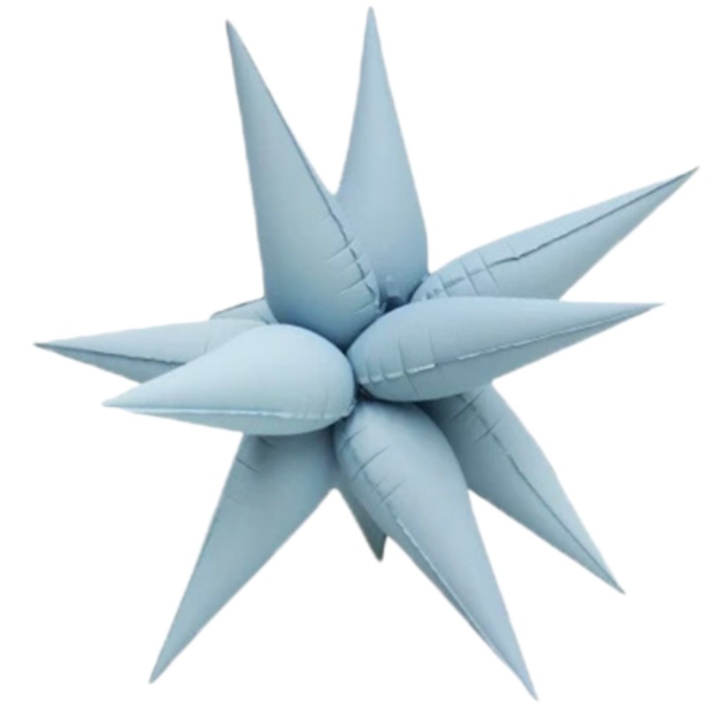 Balon Folie Stea 4D Baby Blue Mat 66cm cu 12 tepi detasabili pentru aranjamente din baloane, panou foto sau arcade organice cu baloane. Comanda acum la pret mic!