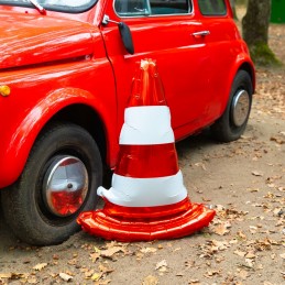 Balon folie 3D în formă de con de trafic, 88 cm, umflare cu aer. Ideal pentru petreceri tematice cu mașini și decoruri pentru copii.