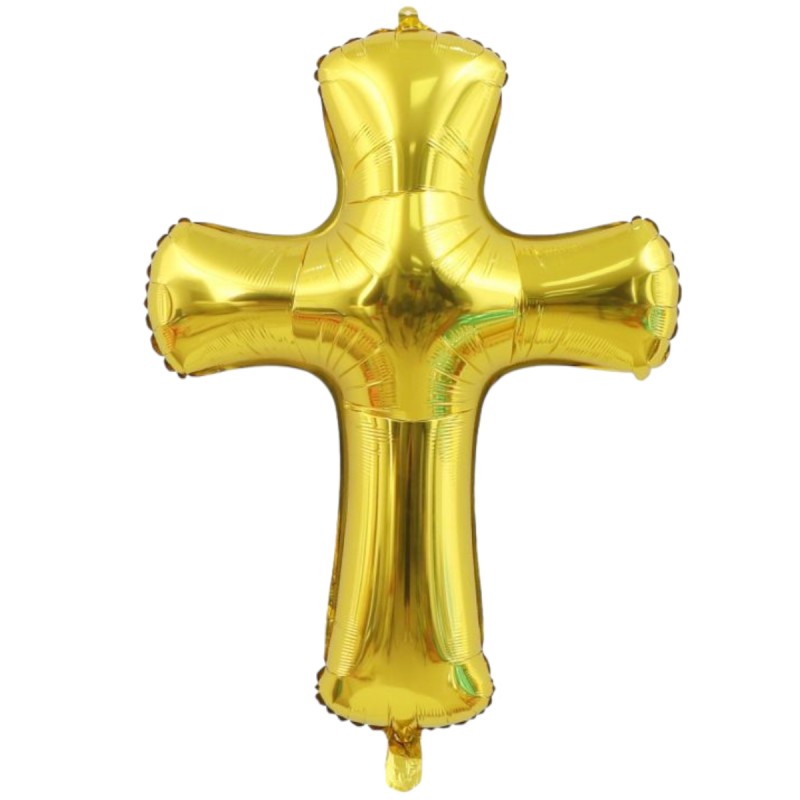 Balon folie aurie în formă de cruce 82cm, perfect pentru botez, prima împărtășanie sau decorul bisericii. Comanda acum baloanele potrivite pentru evenimentul tau!