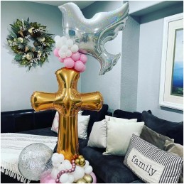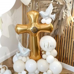 Realizat din folie rezistentă, balonul impresionează prin designul său sobru și totodată festiv, completând perfect atmosfera evenimentelor religioase. Poate fi umflat cu aer sau heliu, fiind potrivit atât pentru decoruri individuale, cât și pentru combinații elegante cu alte baloane tematice.