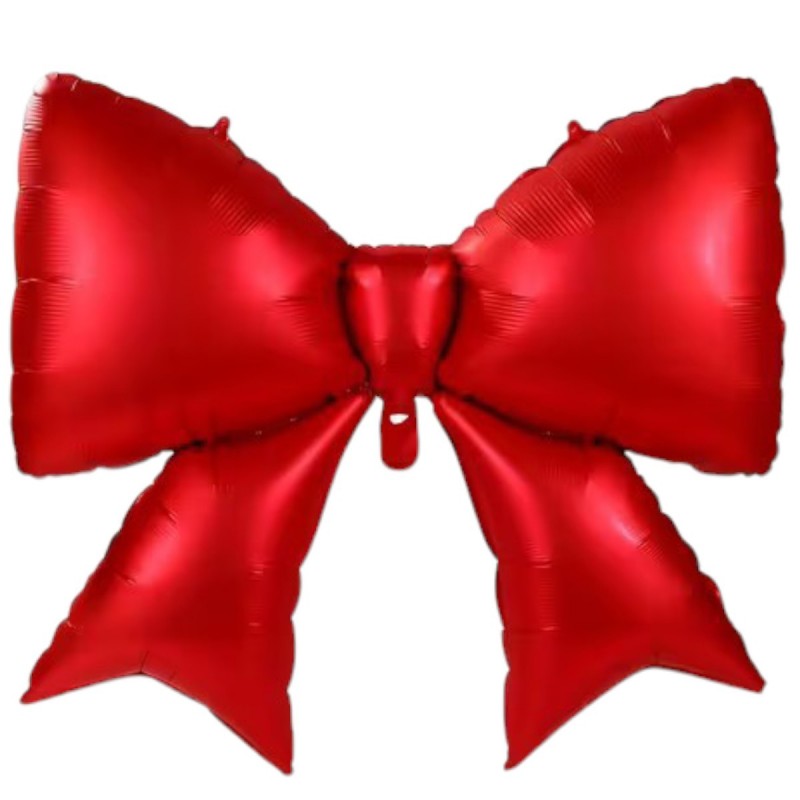 Balon din folie în formă de fundă roșu mat, dimensiune mare 98x75 cm. Ideal pentru panouri foto, aranjamente din baloane, decoruri romantice, petreceri elegante și ședințe foto de Valentine's Day și Crăciun.