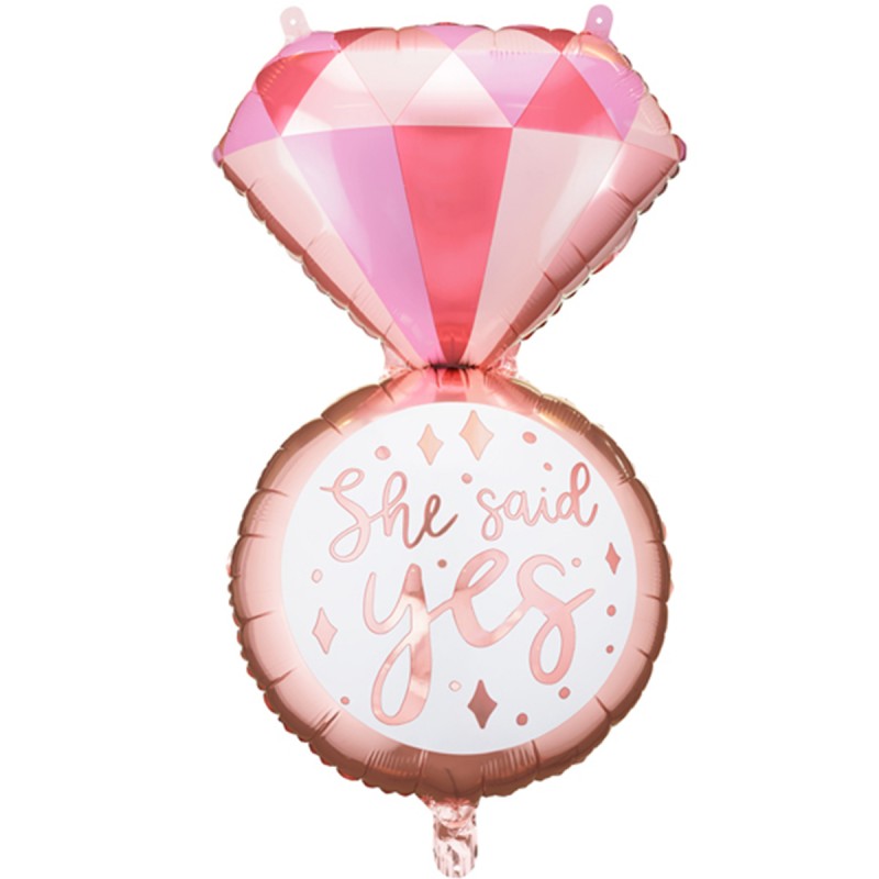 Balon Inel roz cu diamant She Said Yes Dimensiune: 72*41 cm Material: folie Umflare: aer, heliu Ambalare: ambalaj individual