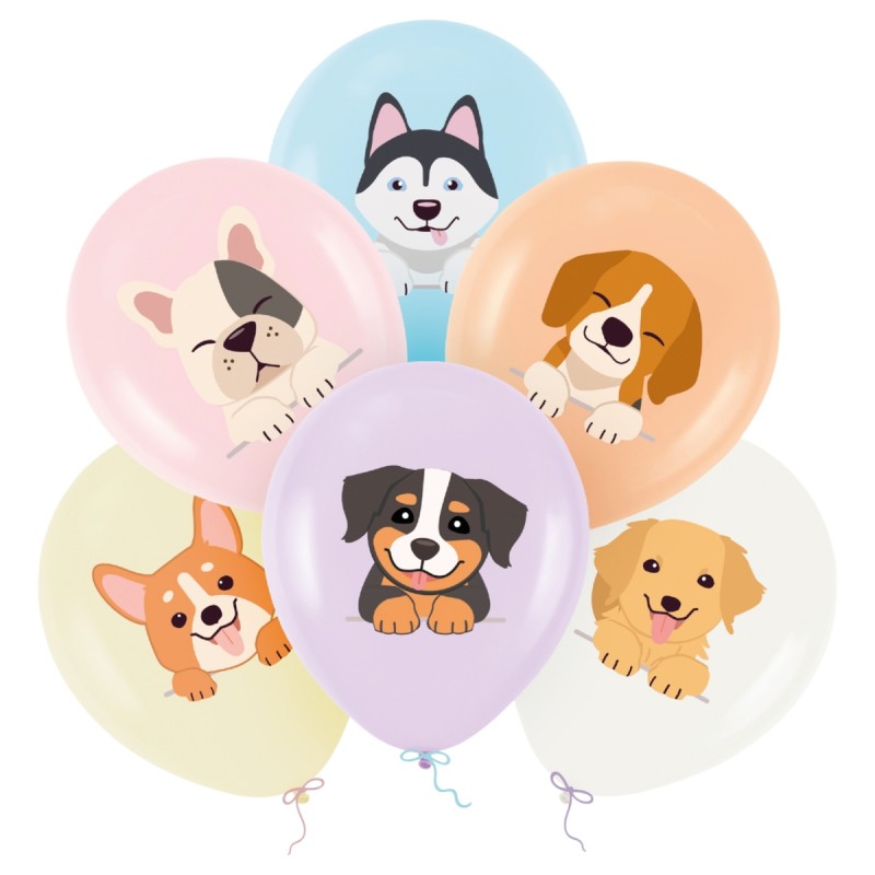 Set de 6 baloane latex cu catelusi. Perfecte pentru petreceri cu tematica Câini, adaugă veselie și culoare oricărui eveniment. Comanda acum baloane de calitate cu livrare rapida!