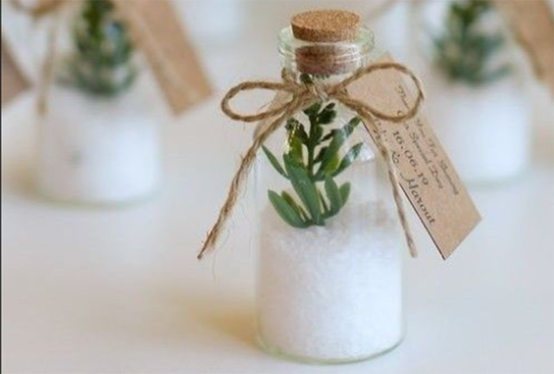 Pentru nunțile cu tematică rustică, sticluțele cu dop de plută sunt alegerea perfectă pentru marturii. Umpleți-le cu flori uscate sau lavandă, adăugați un mesaj personalizat și le puteți oferi invitaților drept amintire din ziua cea mare. Aceste marturii aduc un farmec natural și rustic la eveniment și sunt un simbol al dragostei care înflorește.