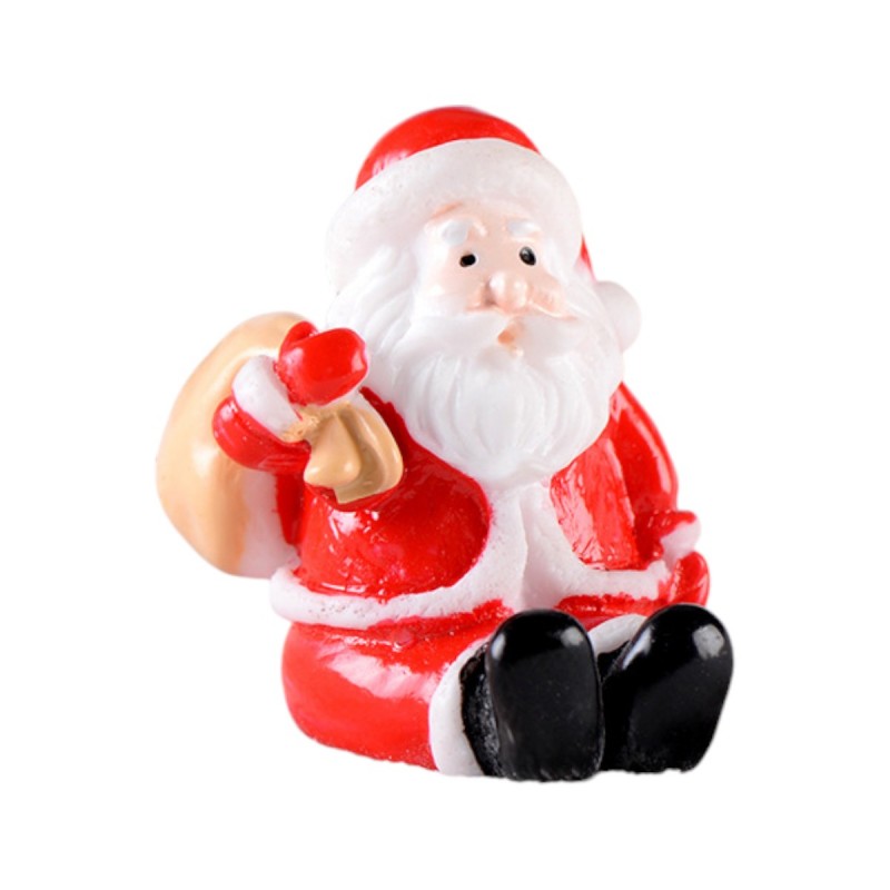 Figurina Mos Craciun cu sac in mana, miniatura rasina 3.7cm, ideală pentru decoruri festive, aranjamente florale de Craciun, candy bar, terarii și proiecte DIY.