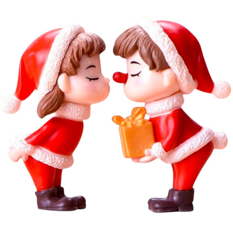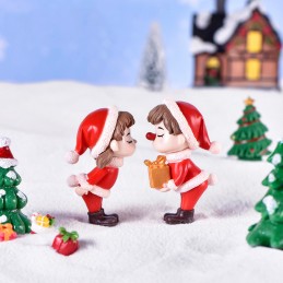 Set 2 figurine Craciun cuplu copii, 7cm din rășină, perfect pentru decoruri festive, aranjamente florale de Craciun, candy bar, terarii și proiecte DIY.