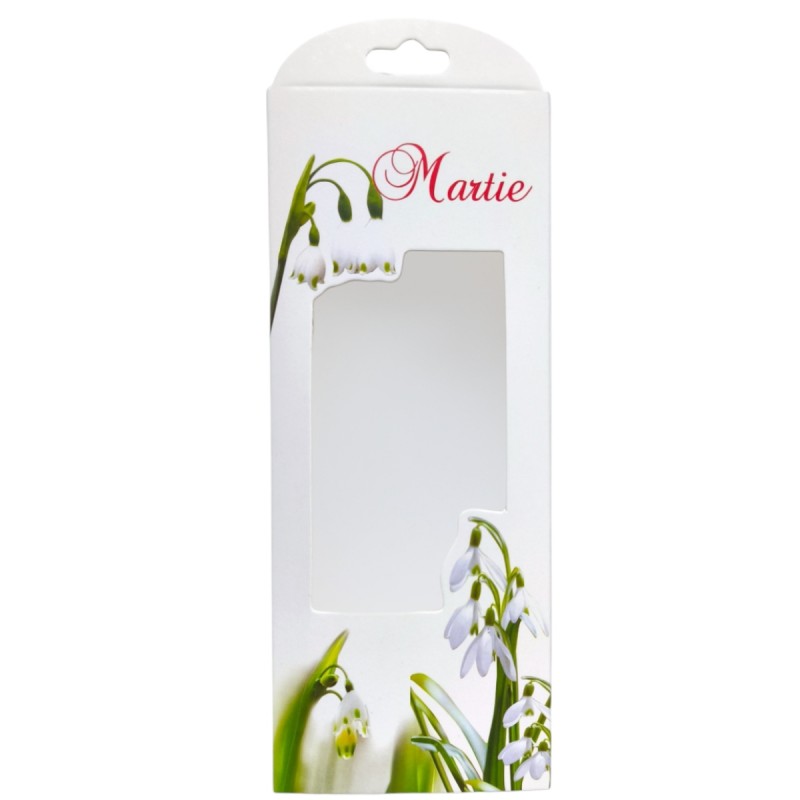 Set 100 ambalaje mărțișor cu ghiocei, din carton. Perfect pentru broșe mărțișor. Mesaj "Martie" inscriptionat pe cutiutel. Livrare rapidă & Preț Mic!