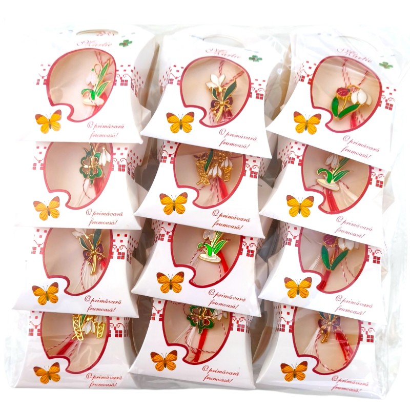 Ambalajul individual al fiecărei broșe, din carton sub forma de poseta, este decorat cu un model delicat traditional și mesajul "Martie", adăugând un plus de farmec fiecărui cadou. Cutiuța este dotată cu un vizor ce expune frumos broșa, transformând-o într-un cadou gata de oferit.