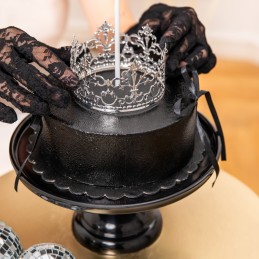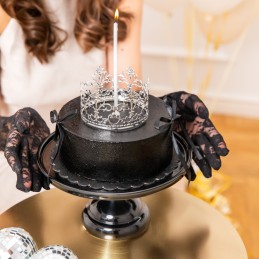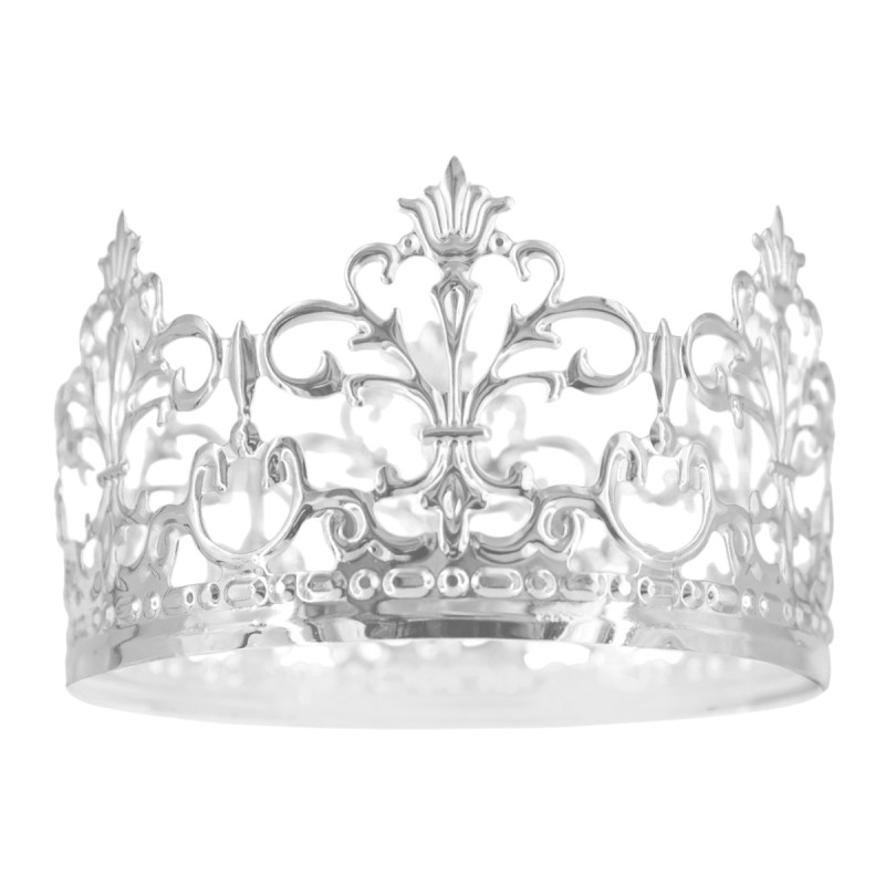 Coroana argintie pentru tort este un accesoriu elegant și rafinat, perfect pentru a transforma orice tort într-o piesă centrală spectaculoasă. Realizată din metal și finisată într-o nuanță argintie strălucitoare, aceasta adaugă un aer regal și sofisticat oricărui eveniment.
