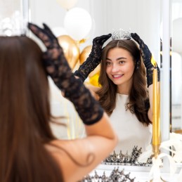Este, de asemenea, perfectă pentru trendul viral în care coronita este așezată pe tort alături de o lumânare: sărbătorita își pune o dorință, suflă în lumânare, apoi își așază coroana pe cap, transformând momentul într-o amintire de neuitat. După petrecere, coroana poate fi păstrată ca suvenir sau reutilizată în decoruri și fotografii speciale, aducând un plus de eleganță fiecărei ocazii.