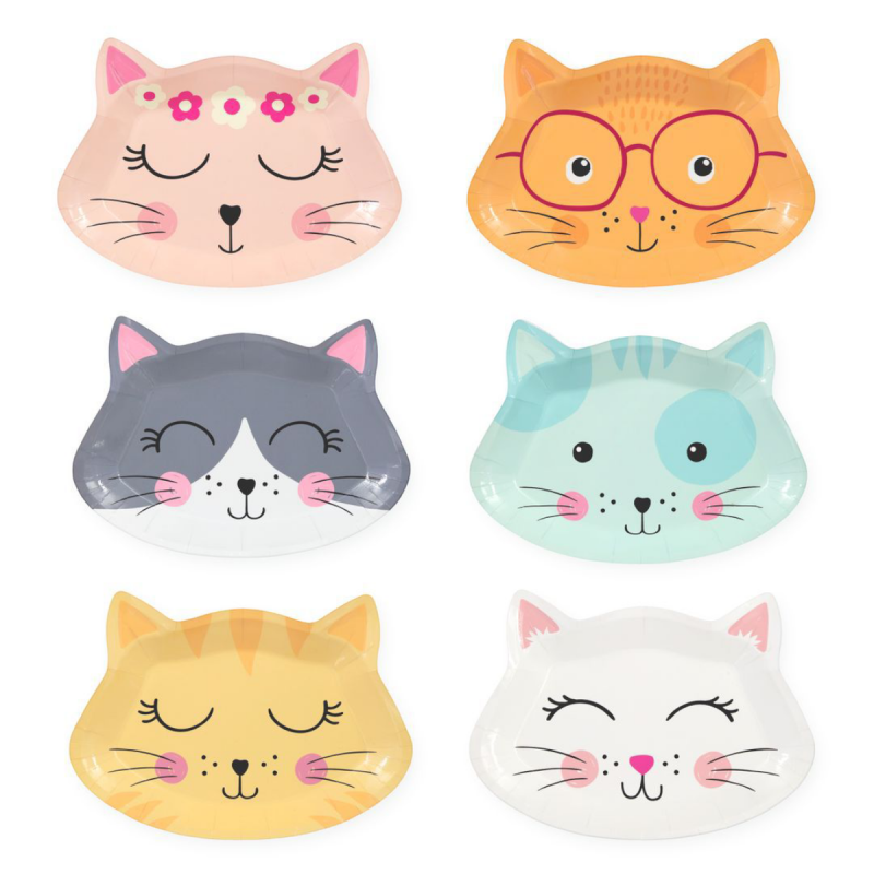 Set 6 farfurii din carton rezistent, cu 6 designuri de capete de pisicuțe, 20.5x15 cm. Perfect pentru petreceri tematice și decor vesel. Livrare rapida!