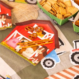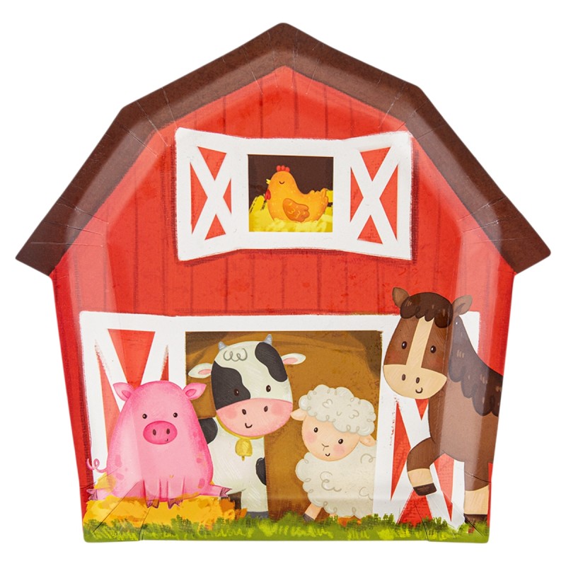 Farfuriile pentru petrecere cu tematică fermă sunt alegerea perfectă pentru a crea un decor vesel și original la evenimentele copiilor. Realizate în formă de hambar și decorate cu animăluțe simpatice, acestea aduc un plus de farmec și autenticitate mesei festive.