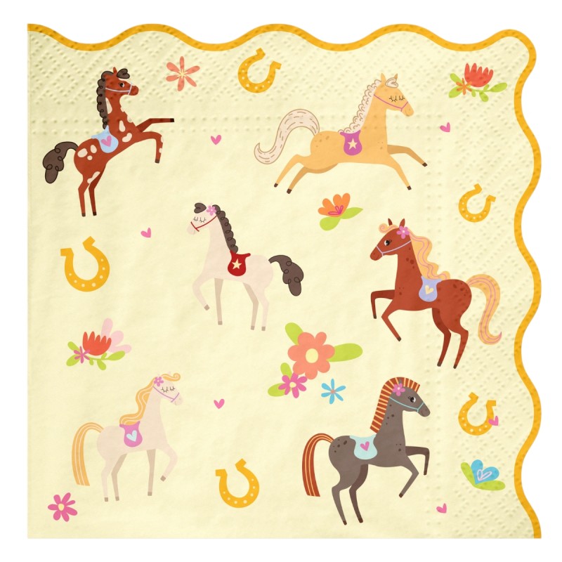 Set 10 șervețele cu tematică căluți, dimensiune 33x33 cm desfăcute. Ideale pentru petreceri copii, aniversări și evenimente echitație.