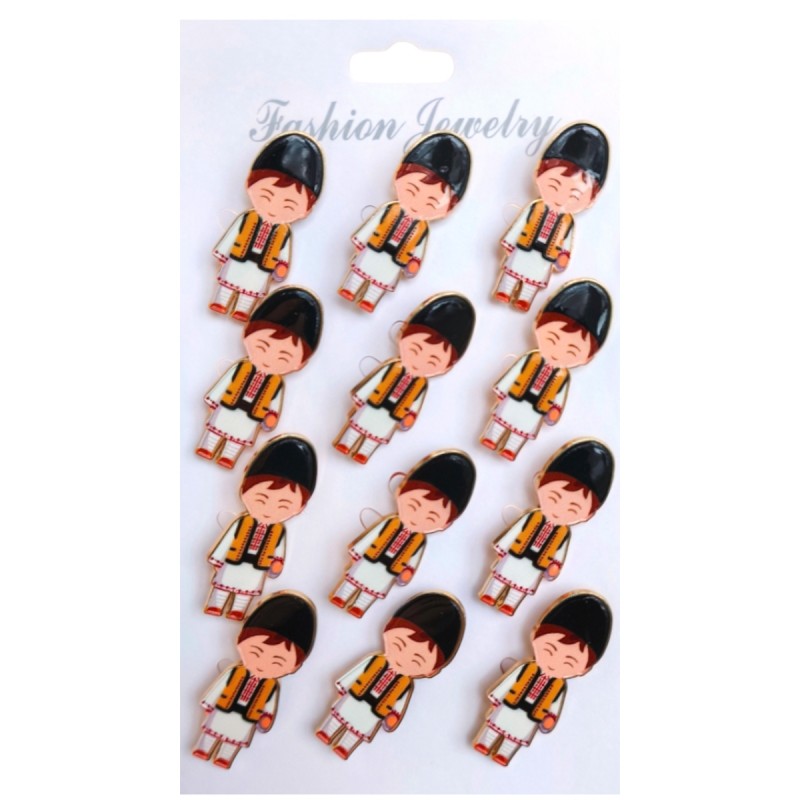 Set de 12 broșe baiat in costum traditional, calitate premium. Perfecte pt a celebra venirea primăverii. Cadou ideal de Mărțișor. Comanda la cel mai mic pret!