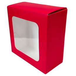 Comanda acum Cutie pliabila din carton rosu 13*13*6cm, cu vizor din PVC transparent in partea superioara, pe capac, pentru cadouri, aranjamente florale sau martisoare.