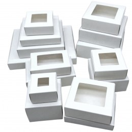 Comanda acum Cutie pliabila din carton alb 12x12x5cm cu fereastra transparenta din pvc si fundita traditionala decorativa, pentru cadouri, aranjamente florale, bomboane sau martisoare.