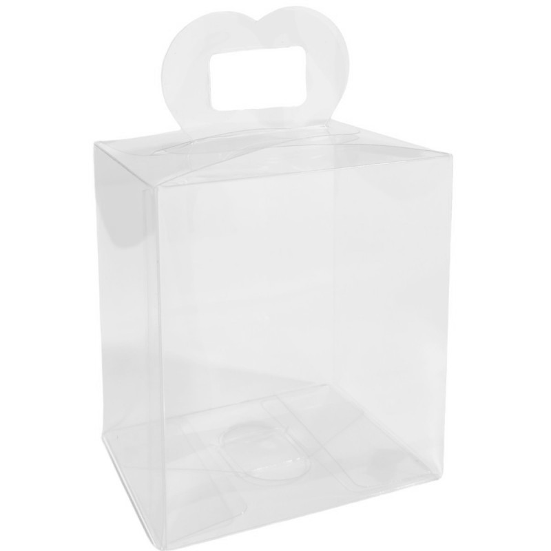 Cumpara Cutie acetofan medie transparenta 7x5x5cm cu maner, ideala pentru aranjamente florale, mărțișoare, cadouri mici. Cutii plastic transparente la cel mai mic pret!