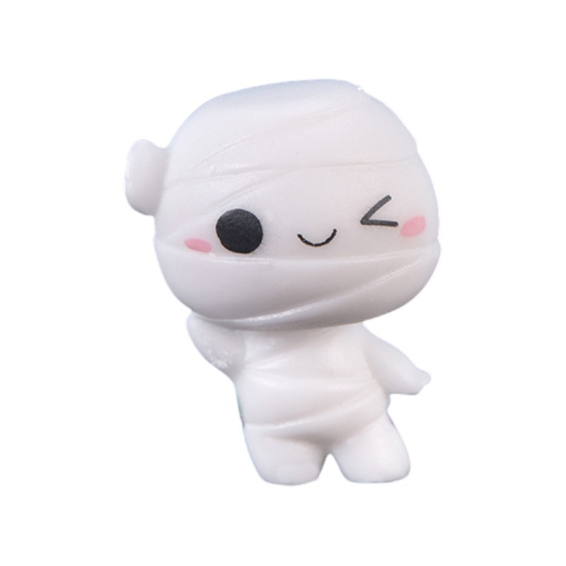Figurina de Halloween mumie din rășină, miniatură de 3cm, este un decor adorabil și jucăuș, perfect pentru a adăuga un strop de mister și distracție tematică. Cu detalii fine și aspect realist, această figurină completează cu succes marturiile pentru Halloween, decorul unui candy bar tematic sau aranjamentele florale și cu licheni.
