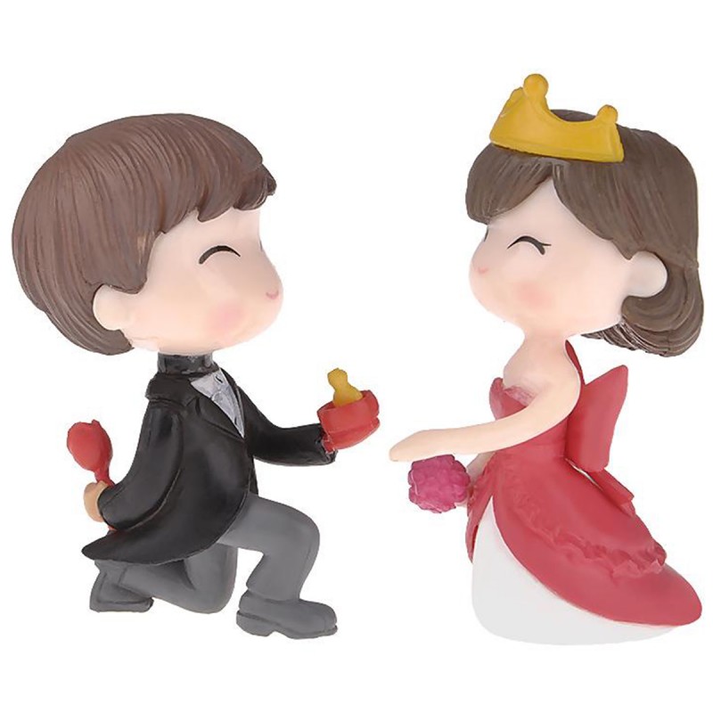 Set 2 miniaturi mire cu mireasa cu coroana aurie, cerere in casatorie, cu dimensiunea de 5.5 cm.