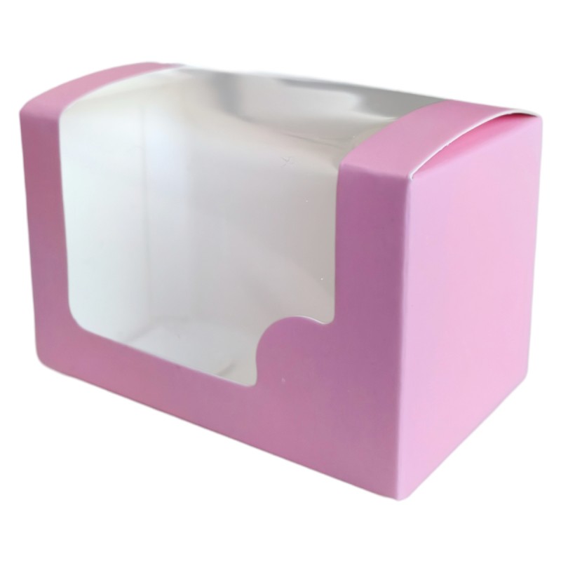 Cutiuta roz din carton simpla 8*5*5cm, cu fereastra din PVC transparent si inchidere in partea superioara. Ideala pentru cadouri, aranjamente florale sau martisoare.