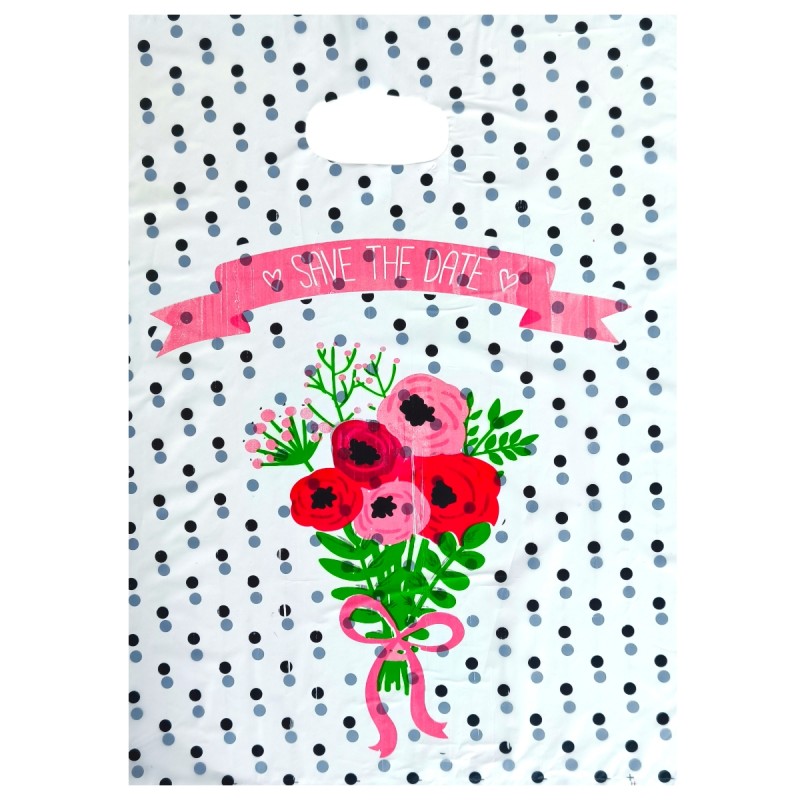 Setul de 100 Pungi mari subtiri cu maci rosii si buline negre 35*25cm , este o modalitate dulce și sensibilă de a-ți exprima afecțiunea. Fiecare punguță este decorată tematic.