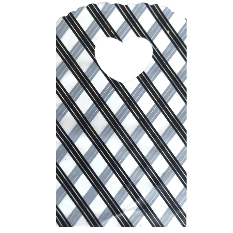 Descoperă Setul de 50 Punguțe Mici Subțiri cu dungi oblice negre , o soluție delicată și plină de iubire pentru ambalarea cadourilor tale speciale.