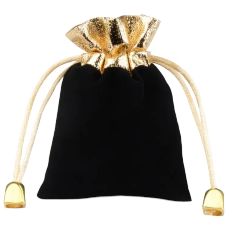 Fie că îl folosești pentru evenimente speciale sau pentru prezentarea produselor handmade, săculețul catifelat negru cu detalii aurii adaugă o notă de lux și eleganță oricărei ocazii.