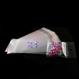 Set 200 pungute transparente 9x6 cm cu clapeta adeziva si agatatoare pentru ambalarea martisoarelor, a micilor cadouri sau bijuterii.